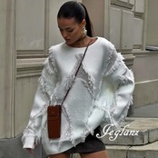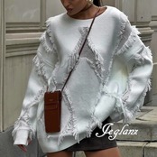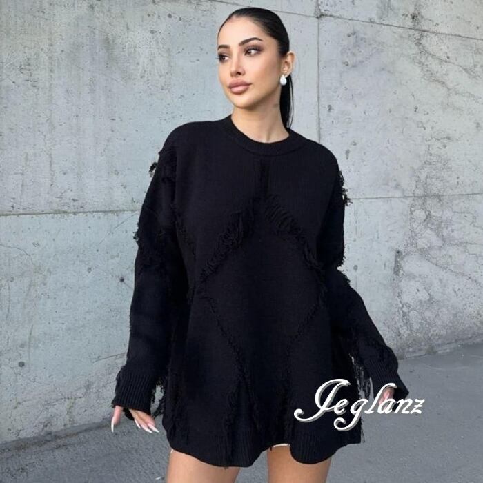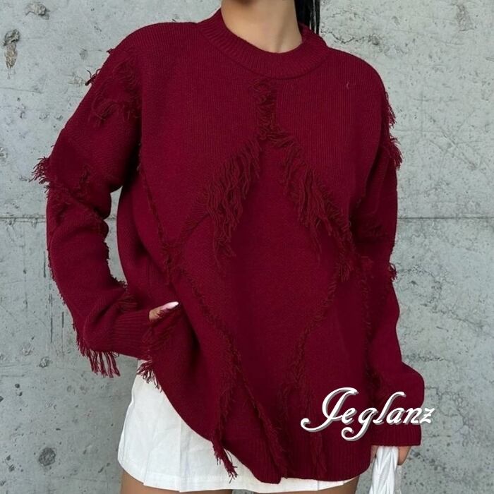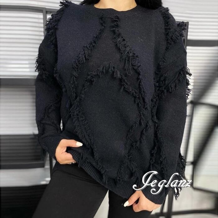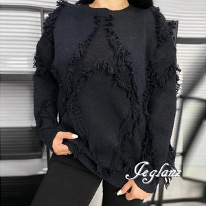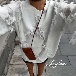 3色 ニット セーター フリンジ ドロップショルダー ルーズ ♪(MB639)σ,ς*
