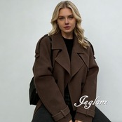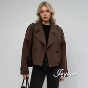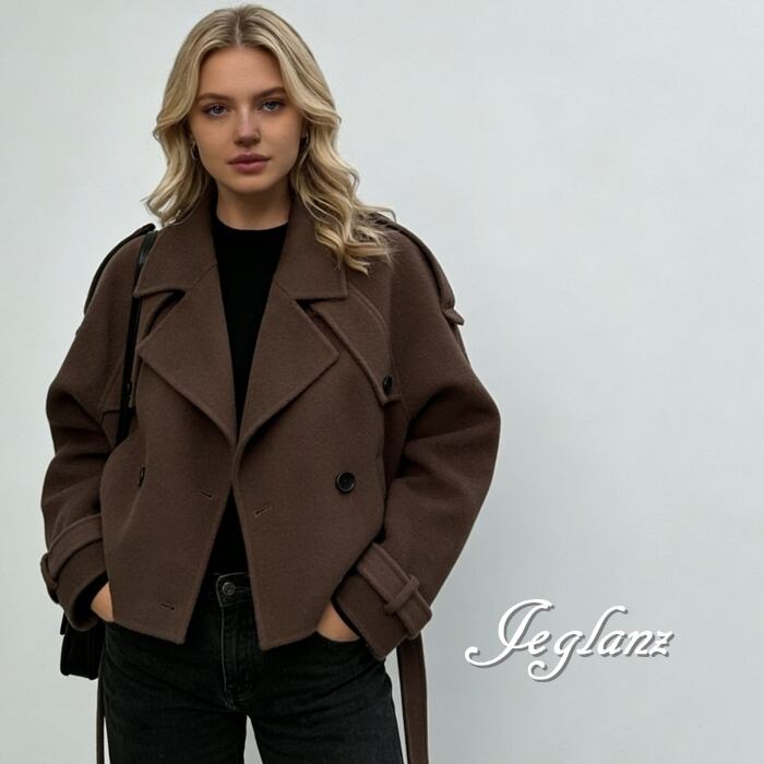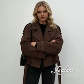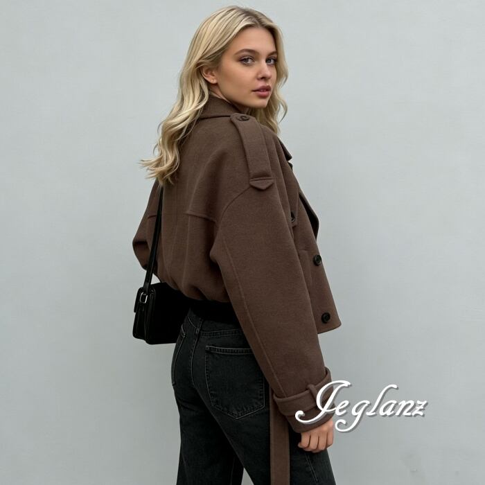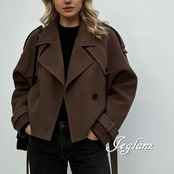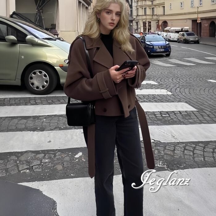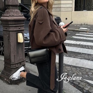 短め丈 ニット ジャケット コート ダブルブレスト 共ベルト 韓国(MB656)φ