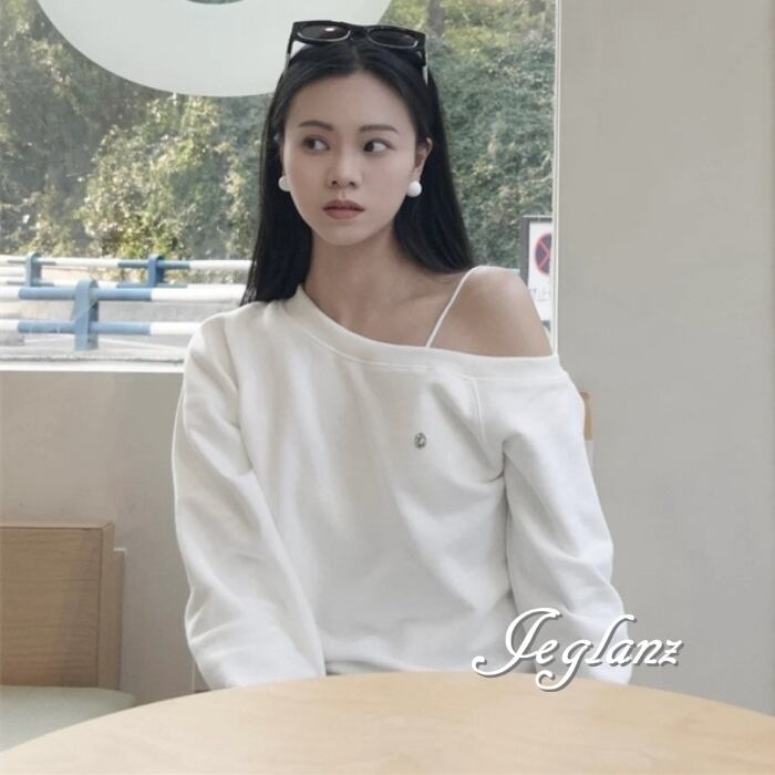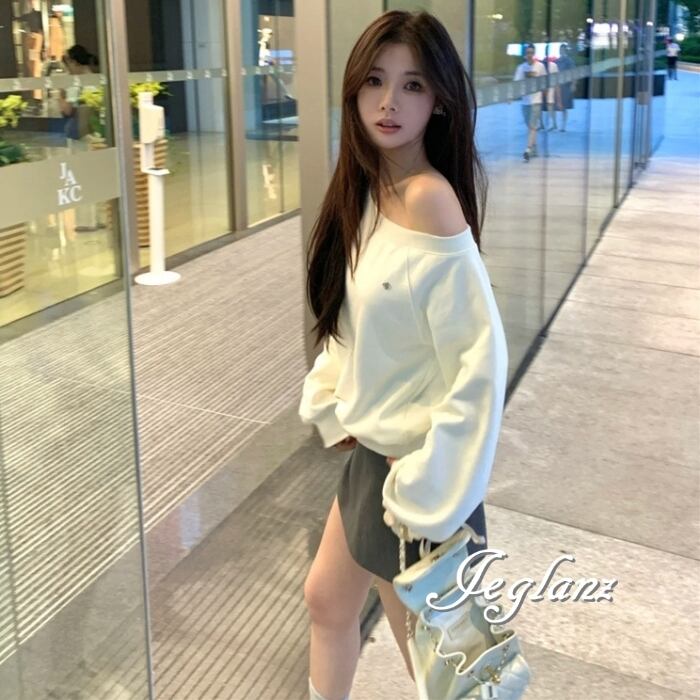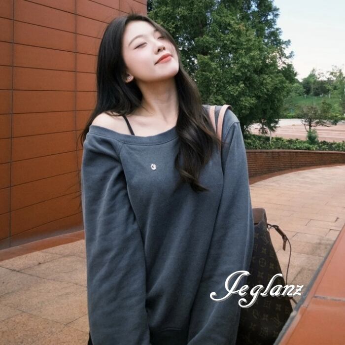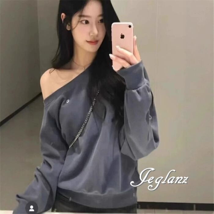 2色 シャツ 長袖 ワンショル トップス ルーズ カジュアル派 韓国(MB678)ρ