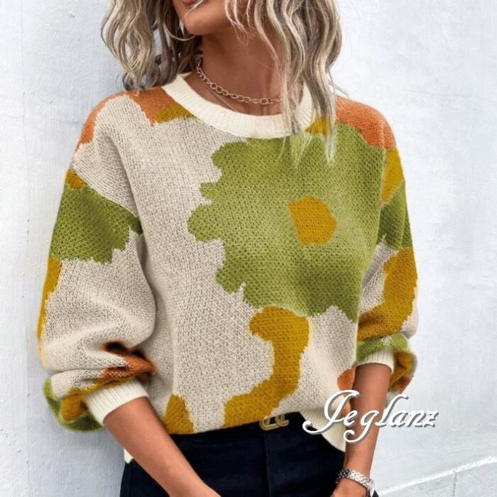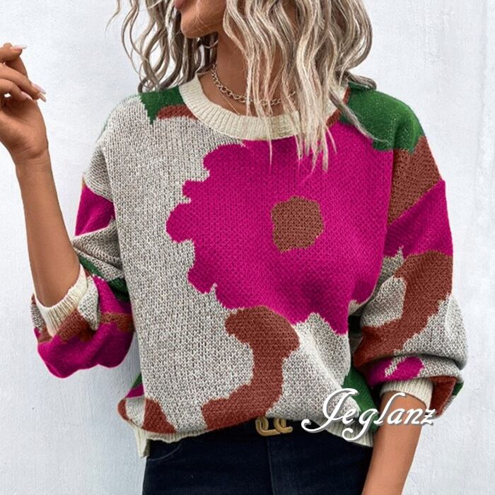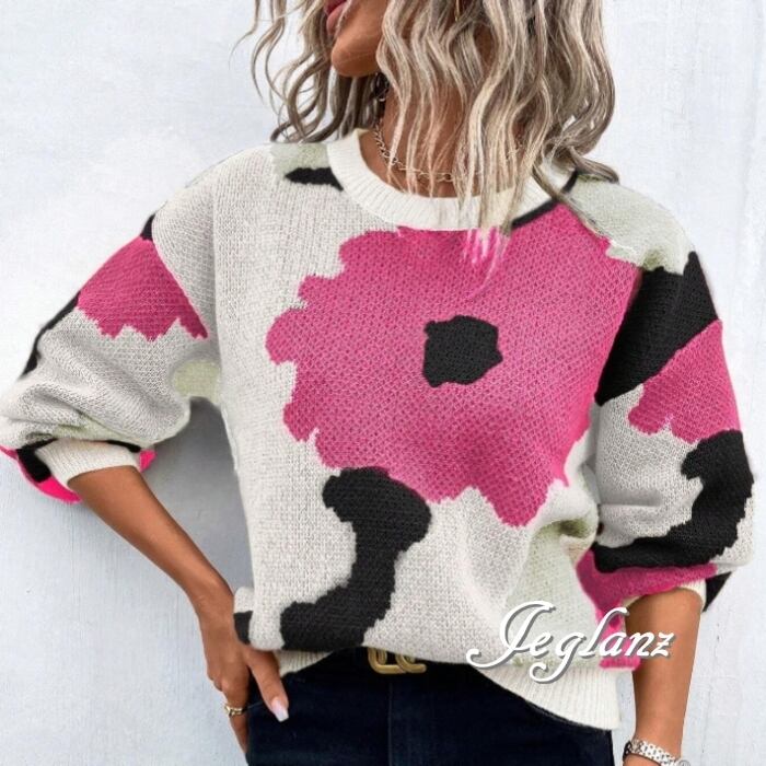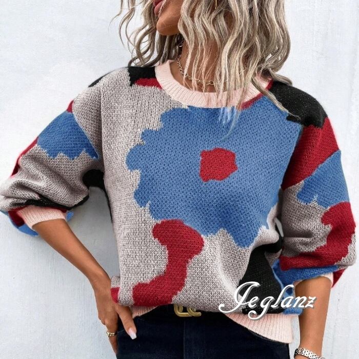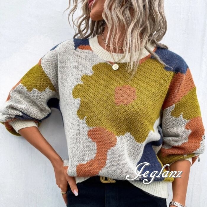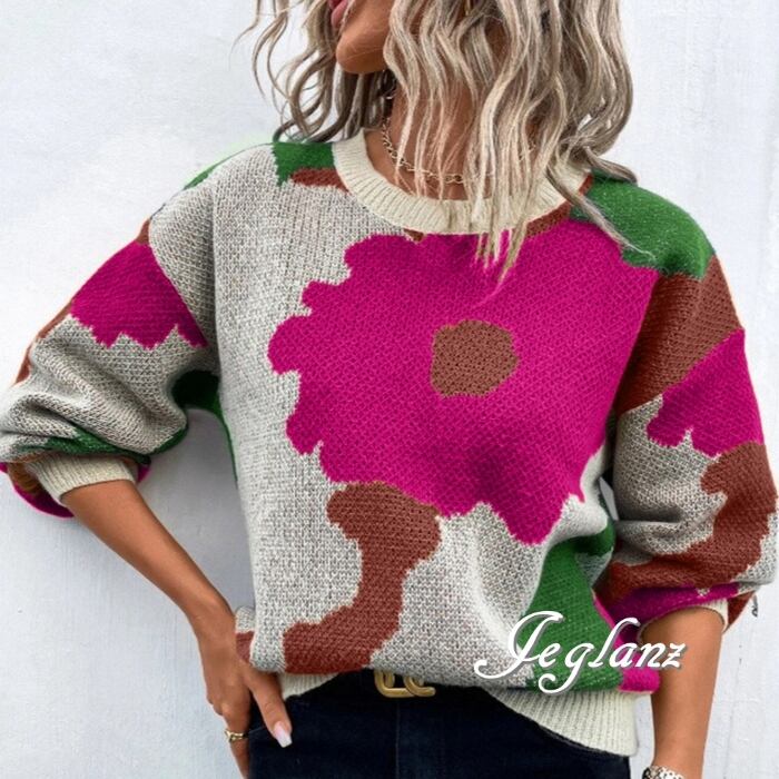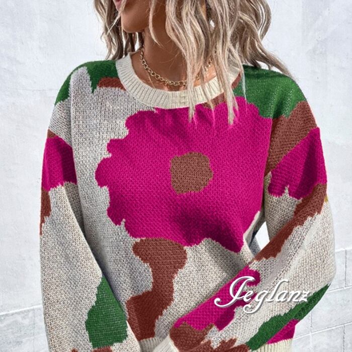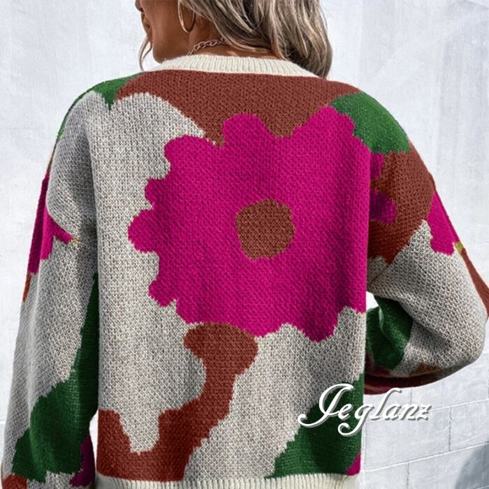7色 ニット セーター 花柄 ラウンドカラー ドロップショルダー(MB687)σ,ς*