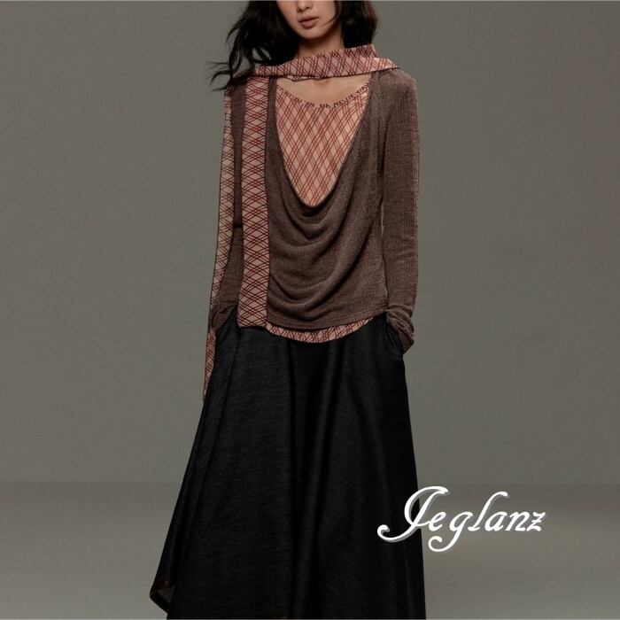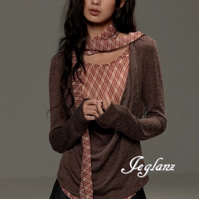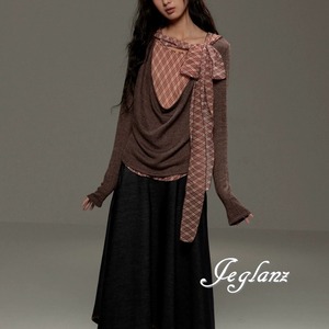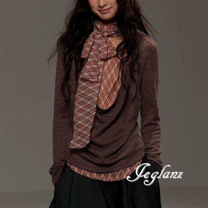 バイカラー シャツ ブラウス レイヤード リボン タイ カジュアル(MB698)ρ