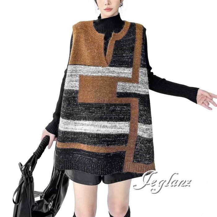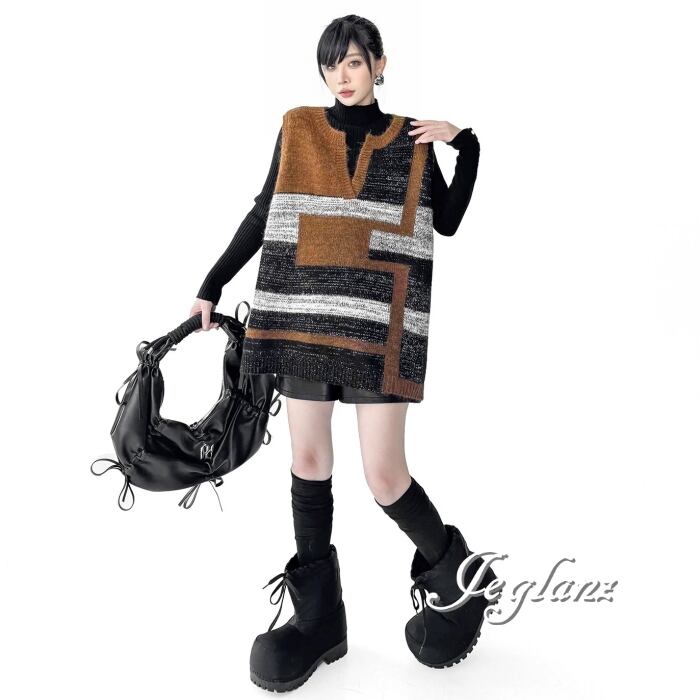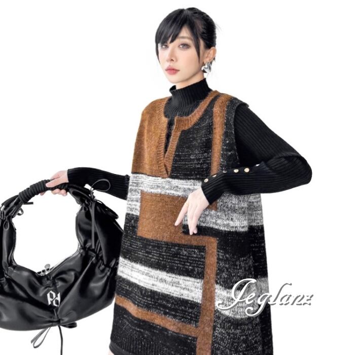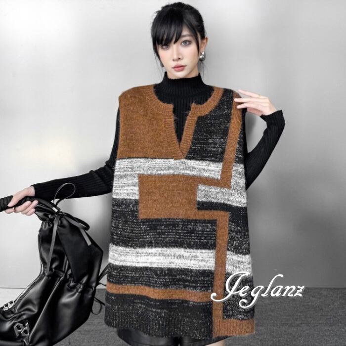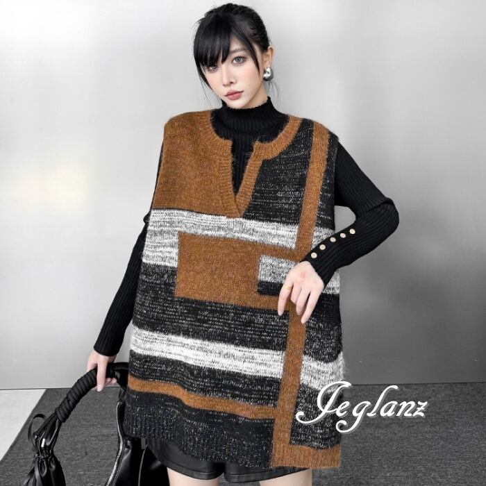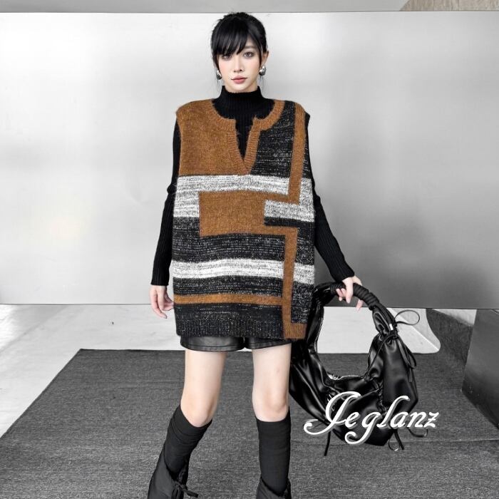 ニット ジレ ベスト キーネック オーバーサイズ カジュアル派 ♪(MB726)τ