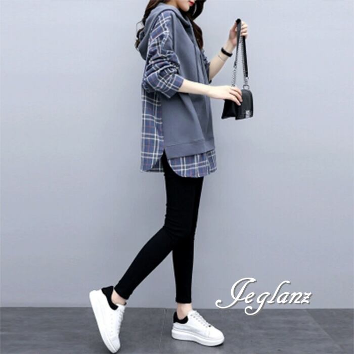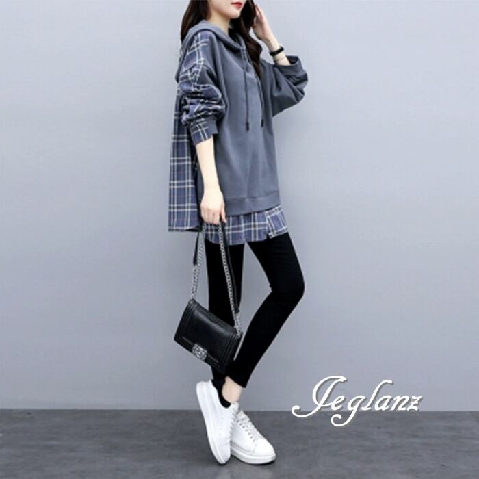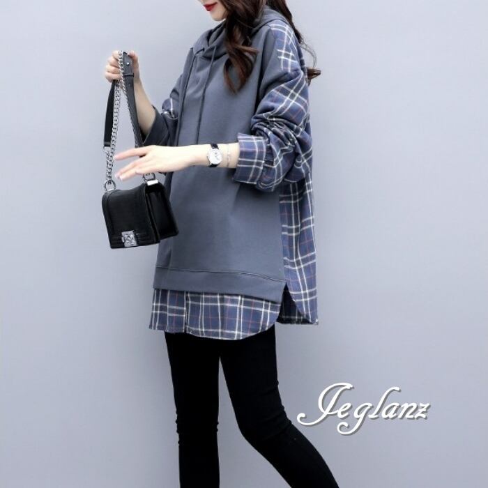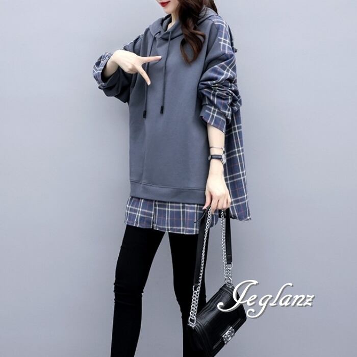 パーカー フーディ プルオーバー フェイク レイヤード ルーズ ♪(MB727)σ,ς*