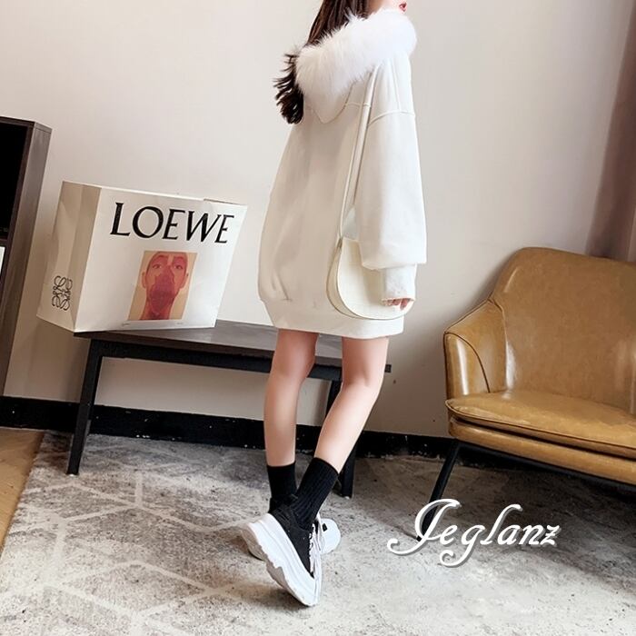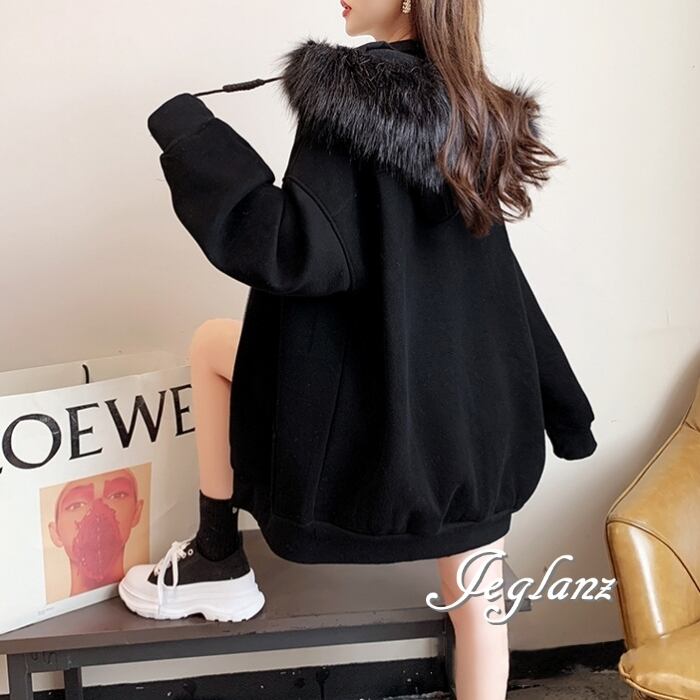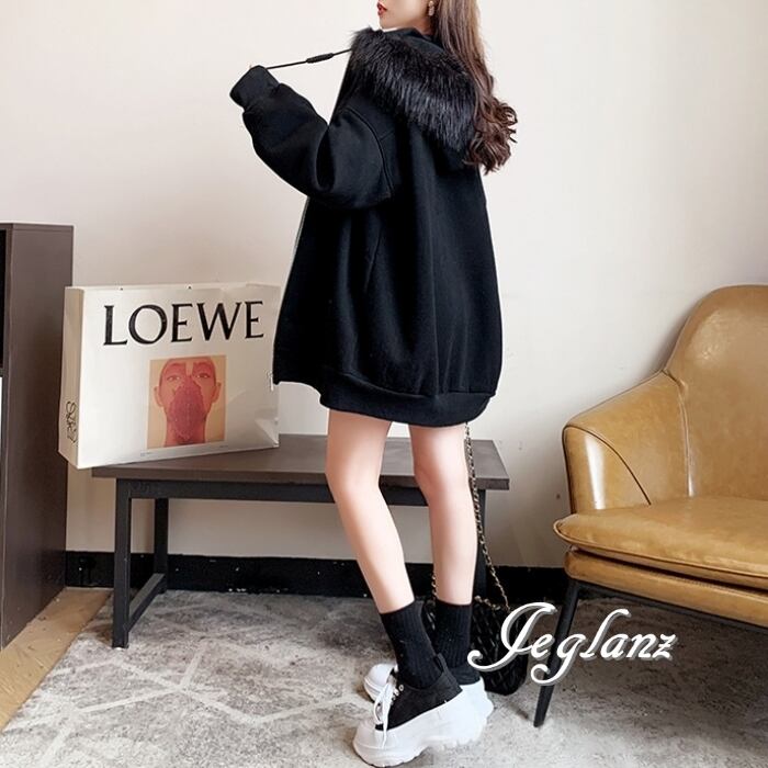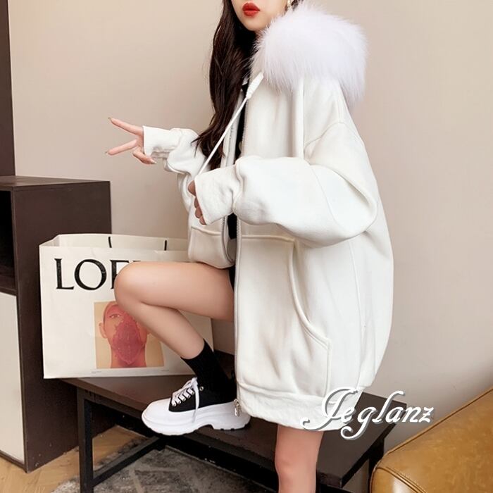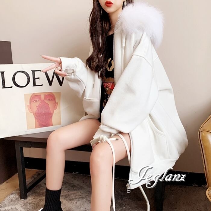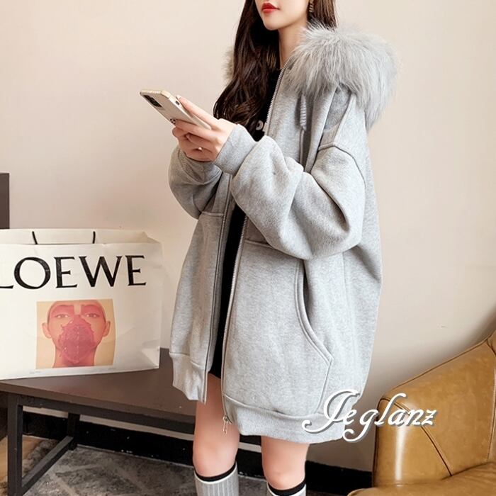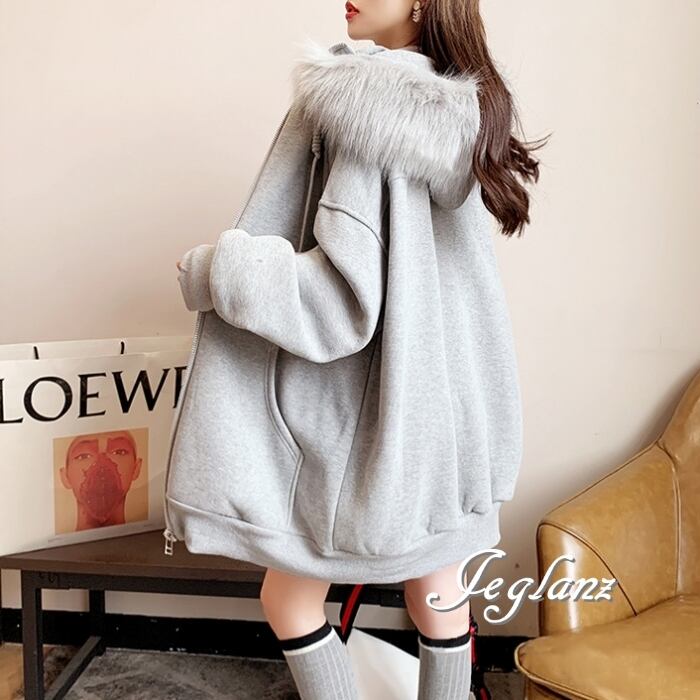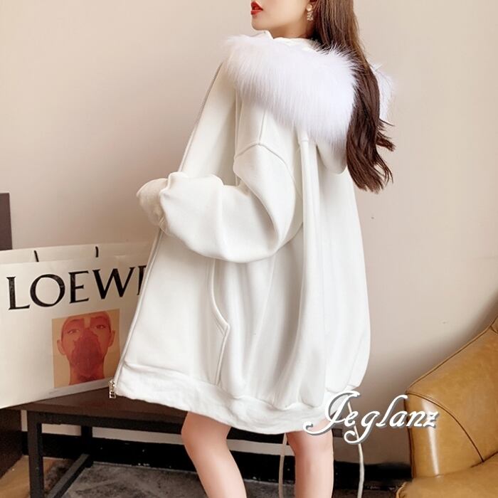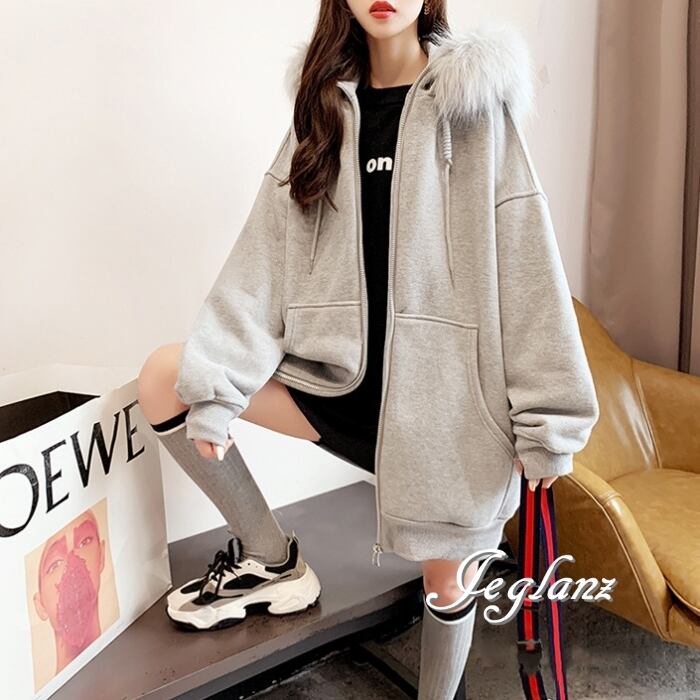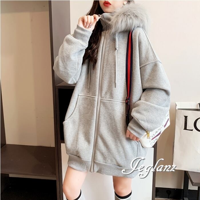3色 ジップアップ パーカー ドロップショルダー ファー付き 韓国(MB728)λ