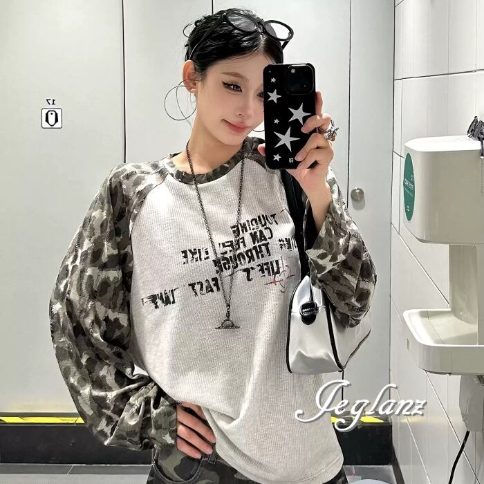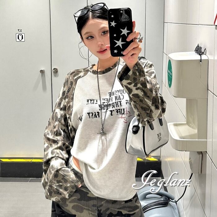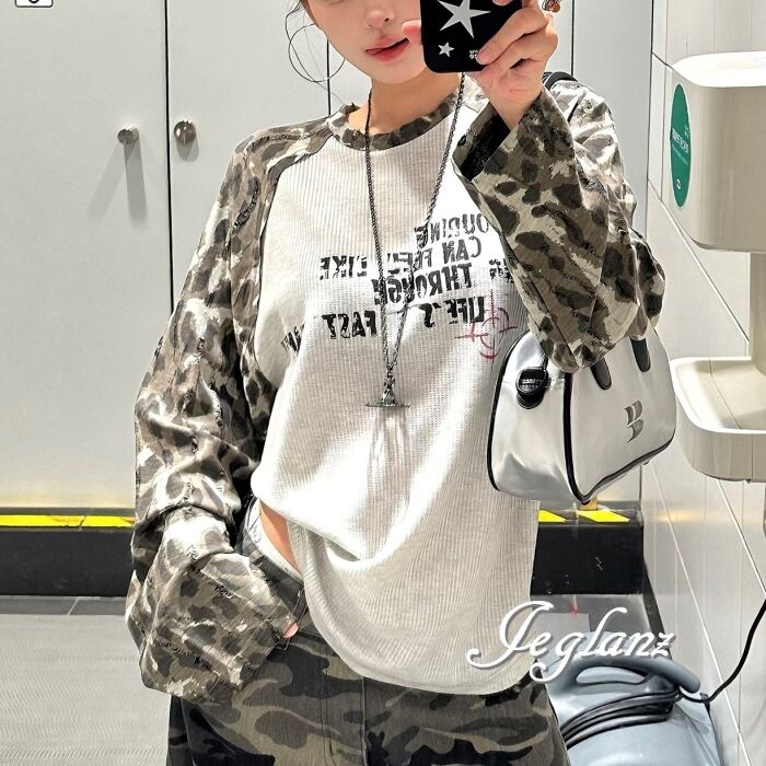 バイカラー 長袖 Tシャツ カットソー ロゴ 迷彩 カモフラージュ( MB740)ρ
