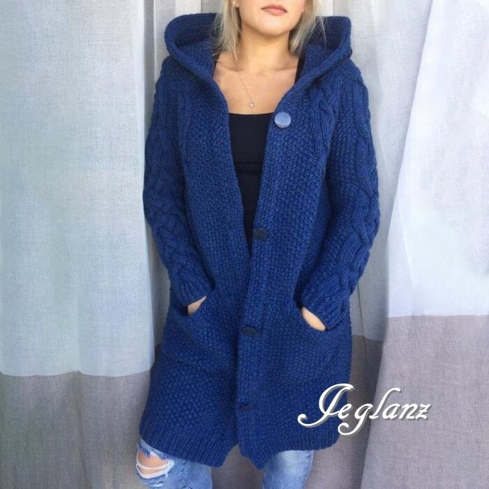 8色 ケーブル ニット カーディガン フード付き 羽織り ボタン(MB748)σ,ς*