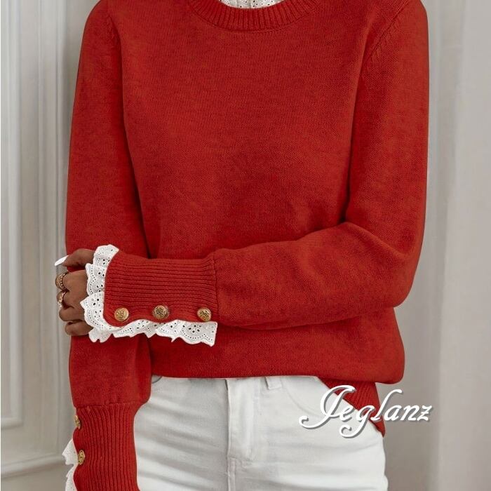 華やかなフリルが目を惹く、女性らしいニットセーター