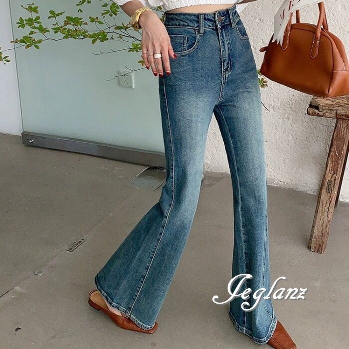 デニム ジーンズ ハイウエスト ワイド レッグ パンツ カジュアル(MB756)ζ