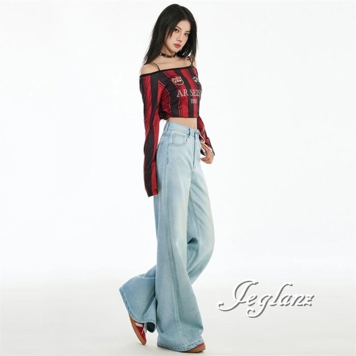 デニム ジーンズ ハイウエスト ワイド レッグ カジュアル パンツ(MB759)ζ