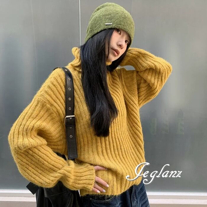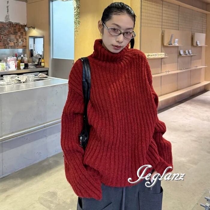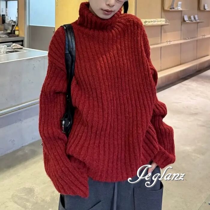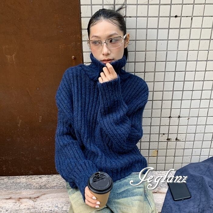 5色 ニット セーター タートル ドロップショルダー ざっくり感(MB776)σ,ς*