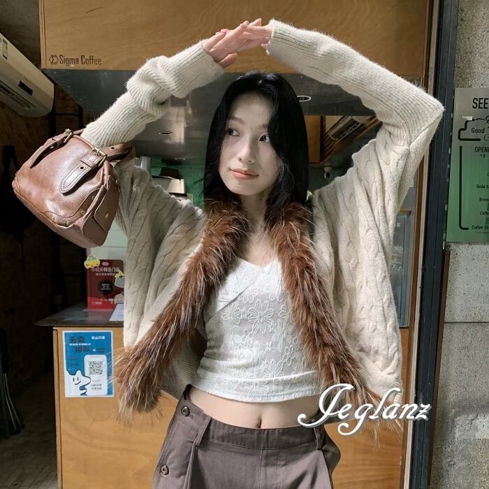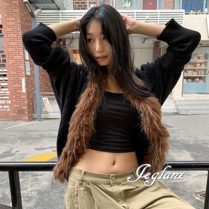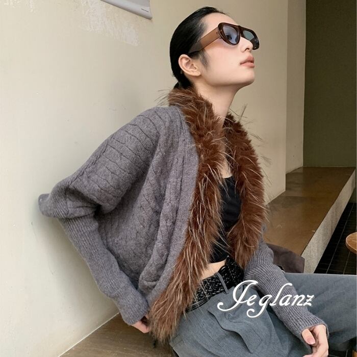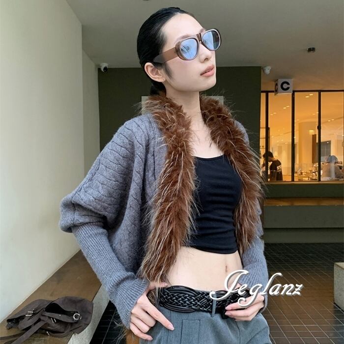 3色 ニット カーディガン ボレロ ボリュームファー 前後差丈 ♪(MB777)σ,ς*