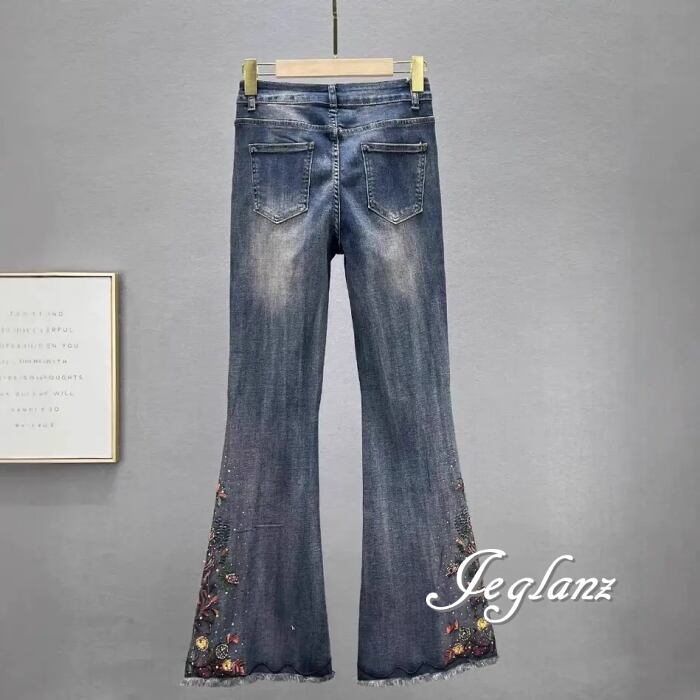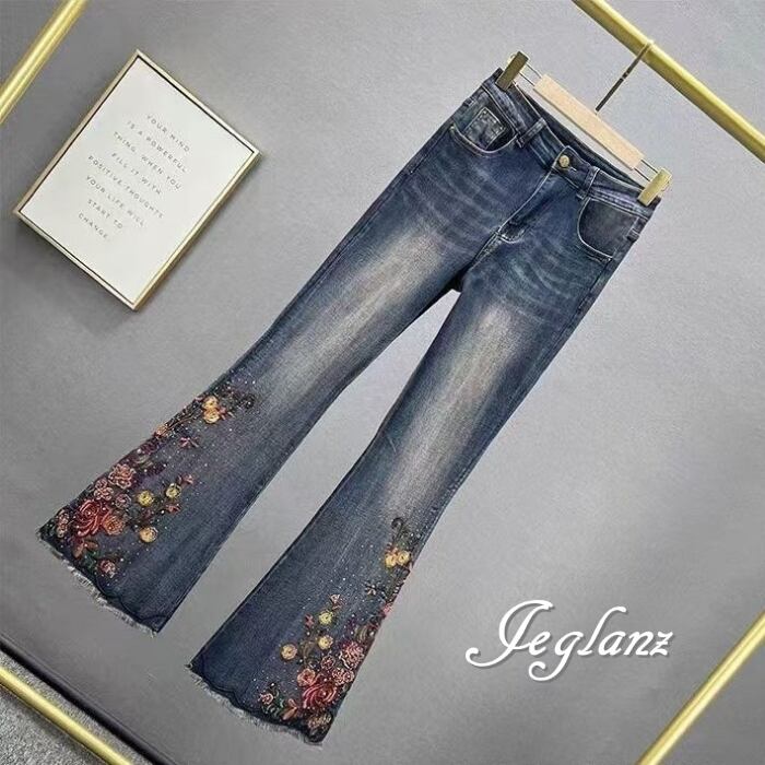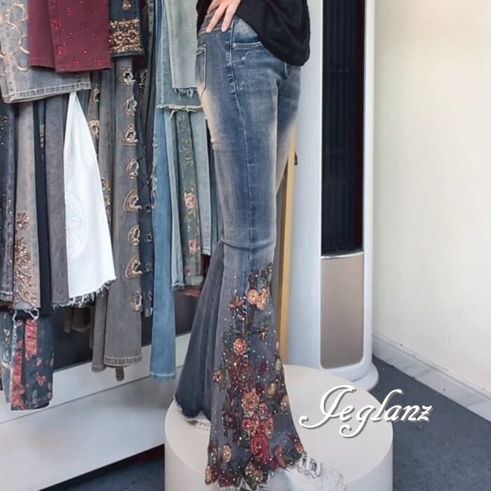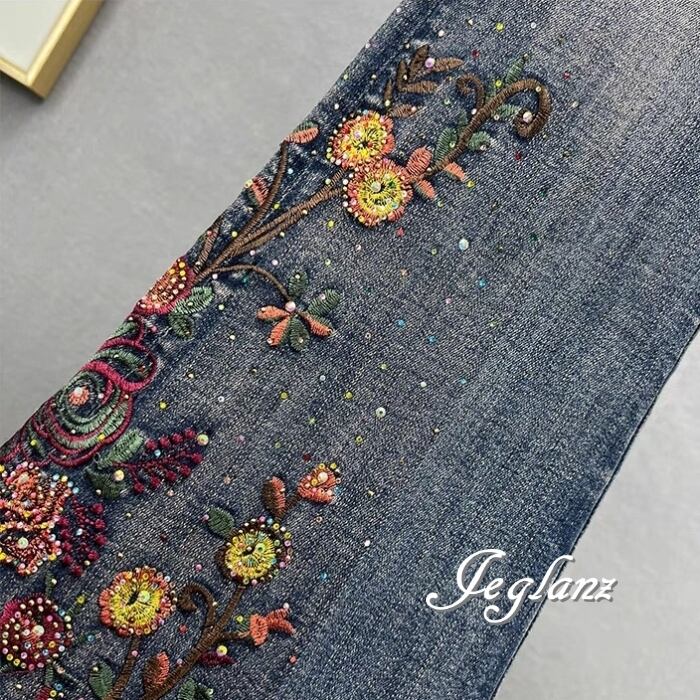 フラワー 刺繍 デニム ジーンズ カットオフ ワイド パンツ 韓国(MB778)ζ