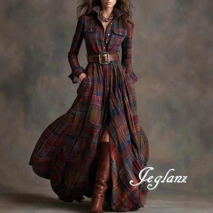 6色 マキシ シャツ ワンピース チェック柄 きれいめ カジュアル(MB767)γα