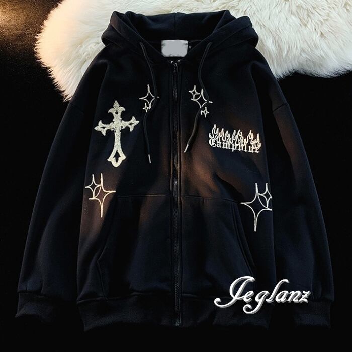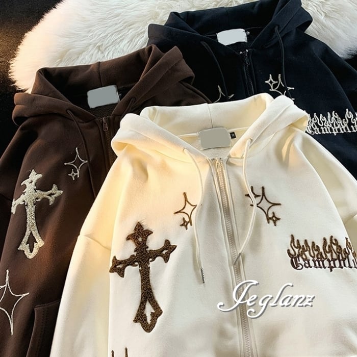 3色 ジップアップ パーカー フーディ 刺繍 ユニセックス 韓国 ♪(MB880)ρ