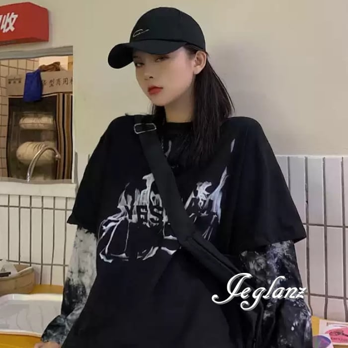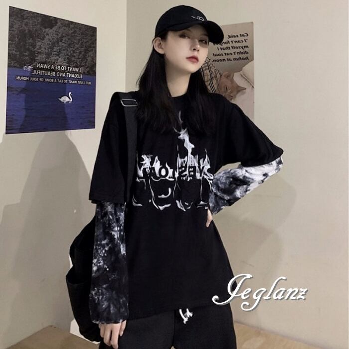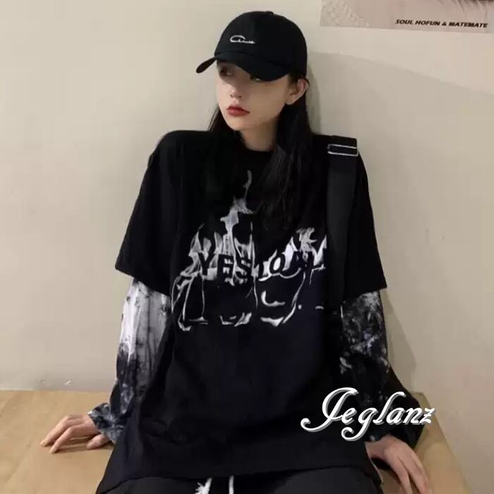 ロングティー長袖 フェイク ツーピース スカル ユニセックス ♪(MB896)ρ