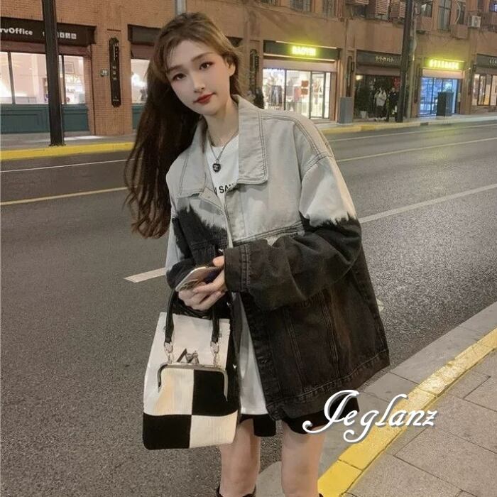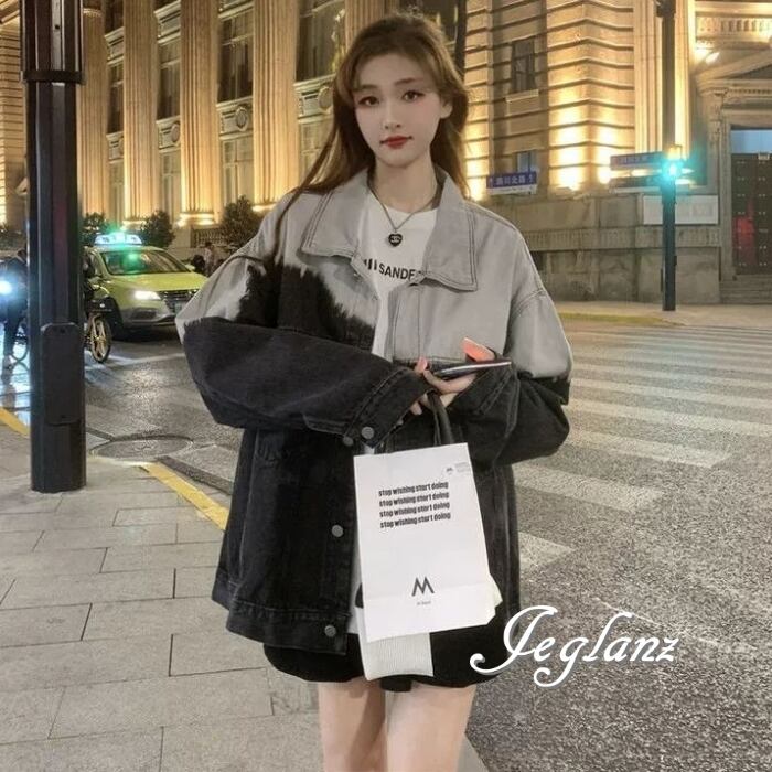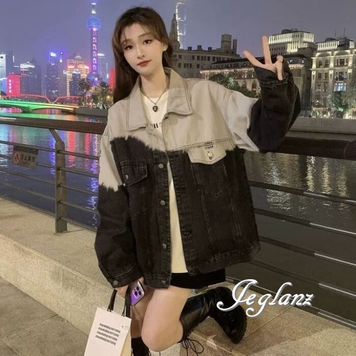 バイカラー デニム Gジャン ジャケット ペイント オーバーサイズ( MB957)λι