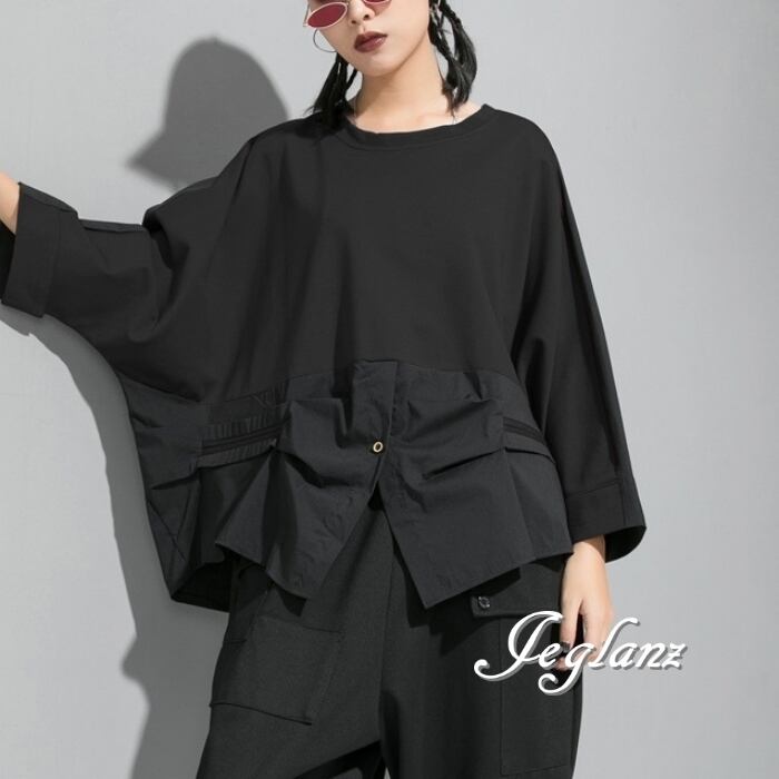 2色 バイカラー デザイン シャツ ブラウス オーバーサイズ 7分袖 ( MB996)ρ