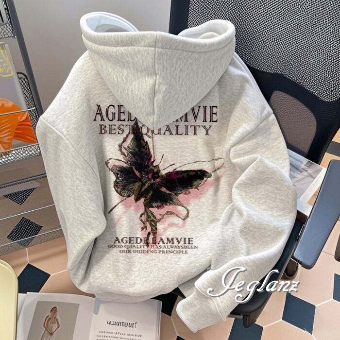 4色 スウェット パーカー フーディ ロゴ 蝶 バタフライ デザイン (MC007)σ,ς*