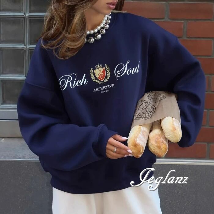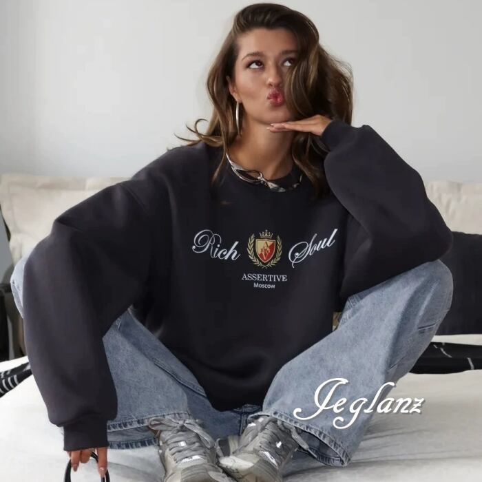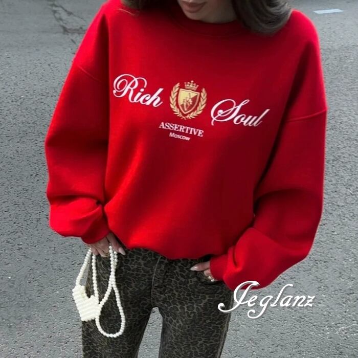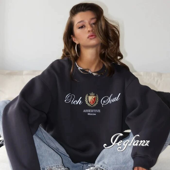 6色 スウェット シャツ エンブレム ロゴ ドロップショルダー ♪(MC016)γα