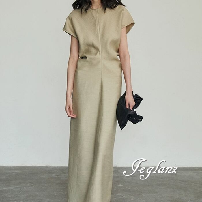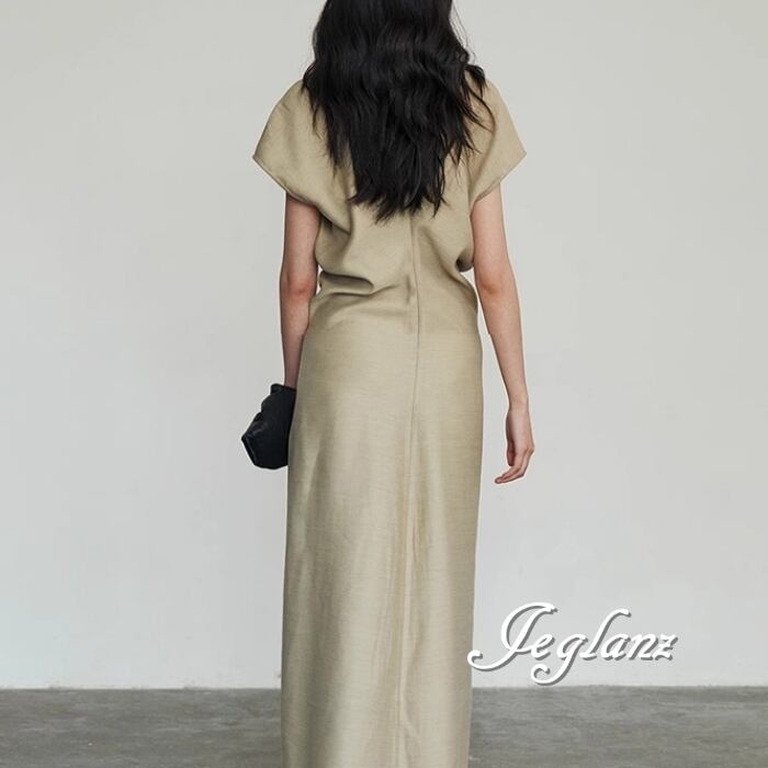2色 マキシ ワンピース 半袖 サマードレス きれいめ シンプル派(MC026)γα