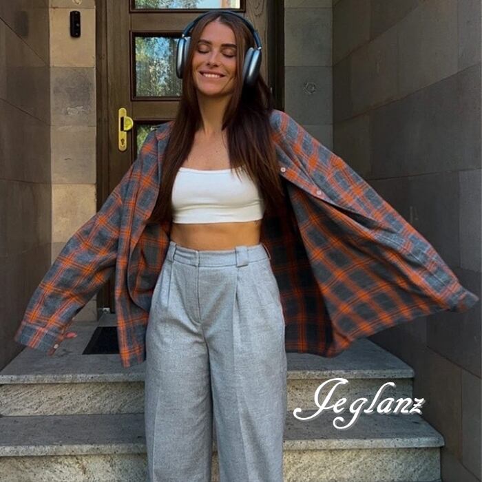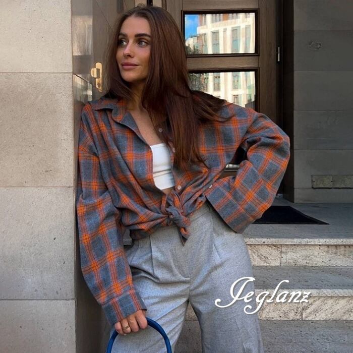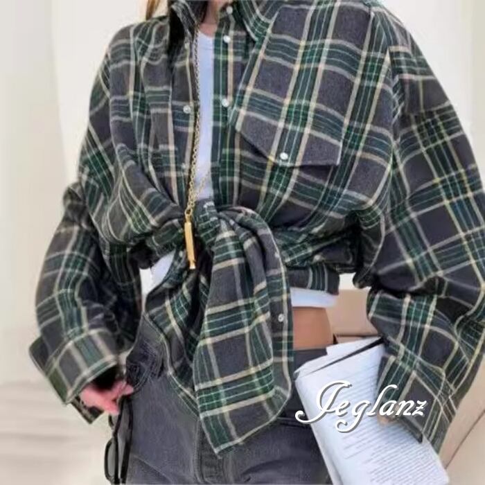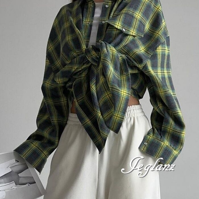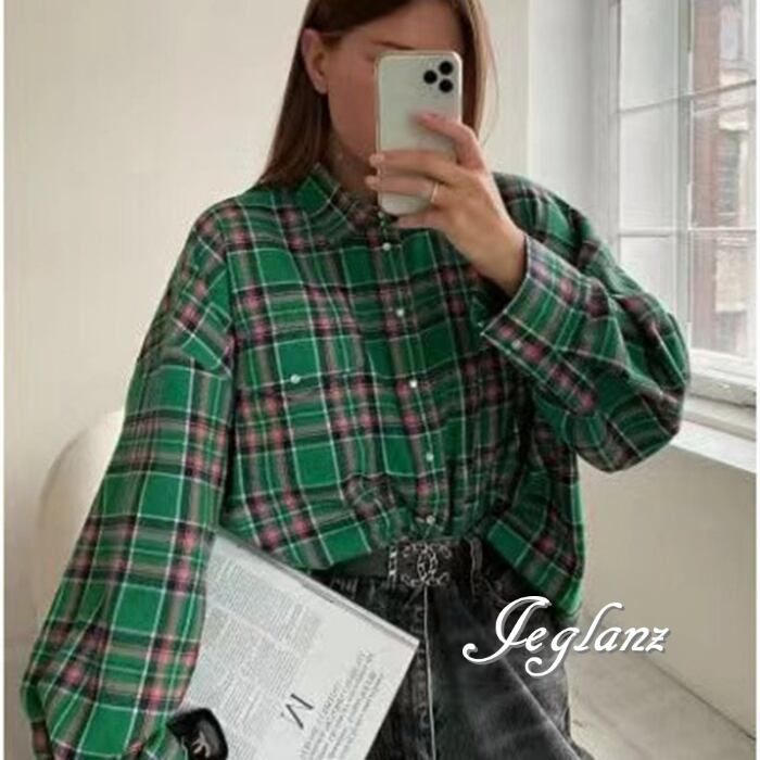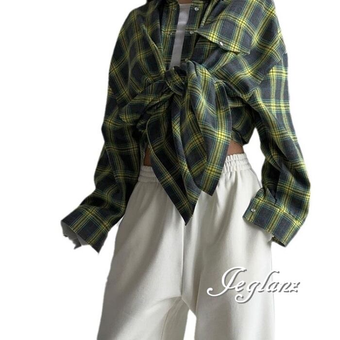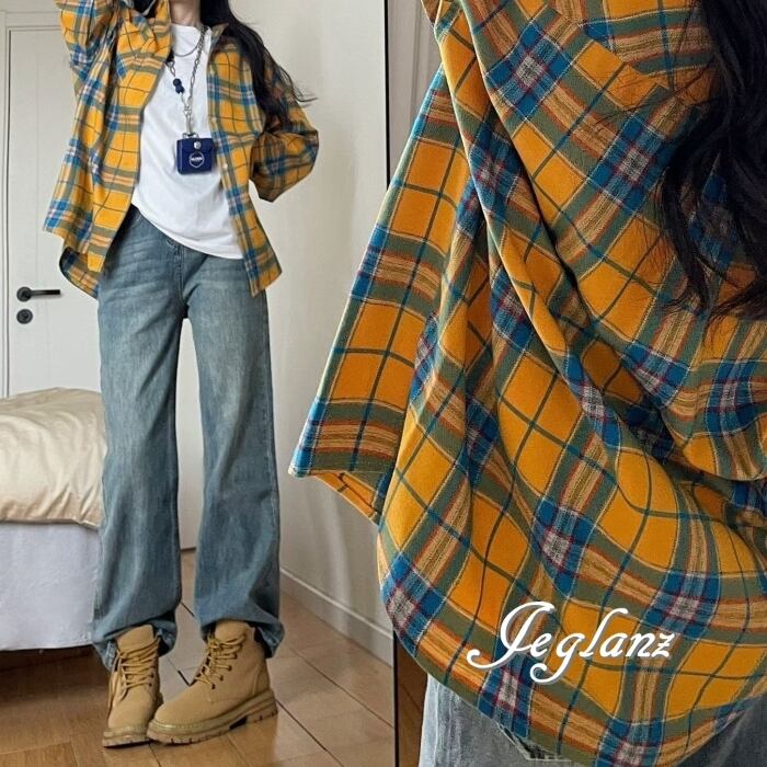 11色 チェック柄 シャツ ドロップショルダー ユニセックス 韓国(MC029)σ,ς*