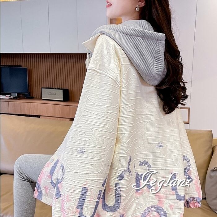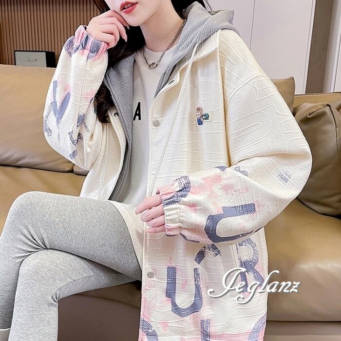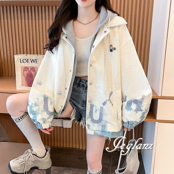 フーディとジャケットを組み合わせたレイヤード風デザイン