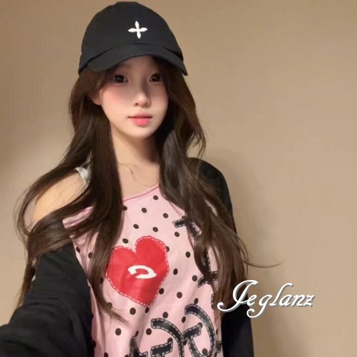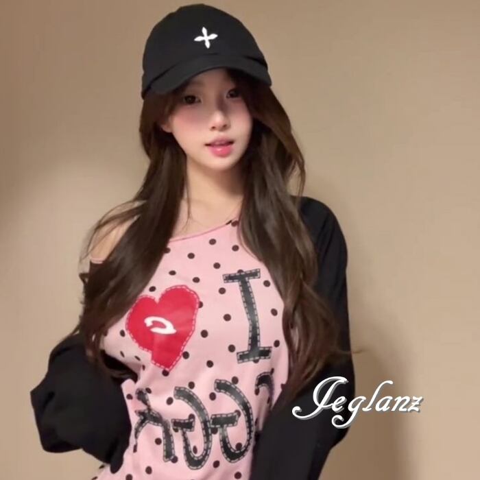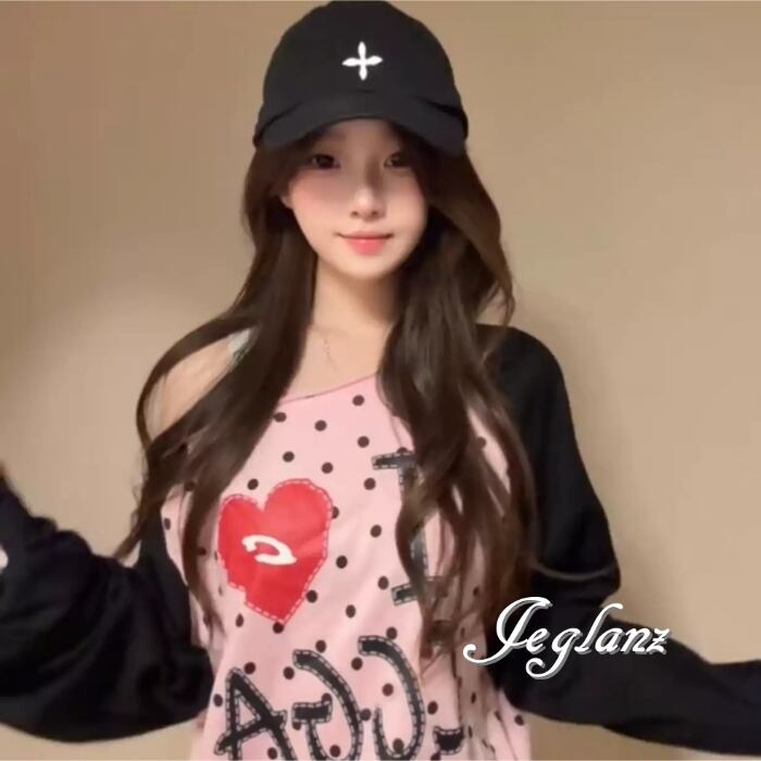 バイカラー ロンT 水玉 ハート デザイン ギャザー 紐リボン ♪(MC048)ρ
