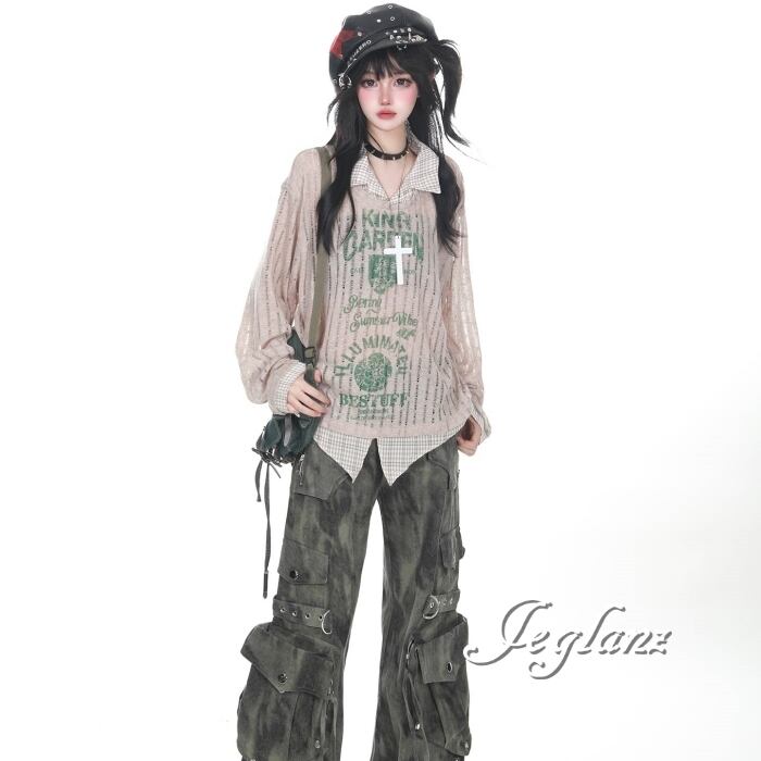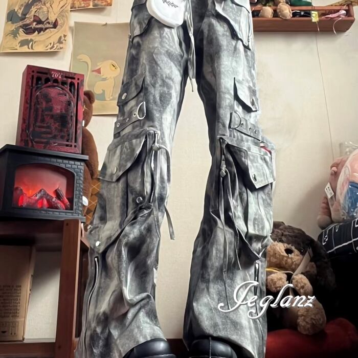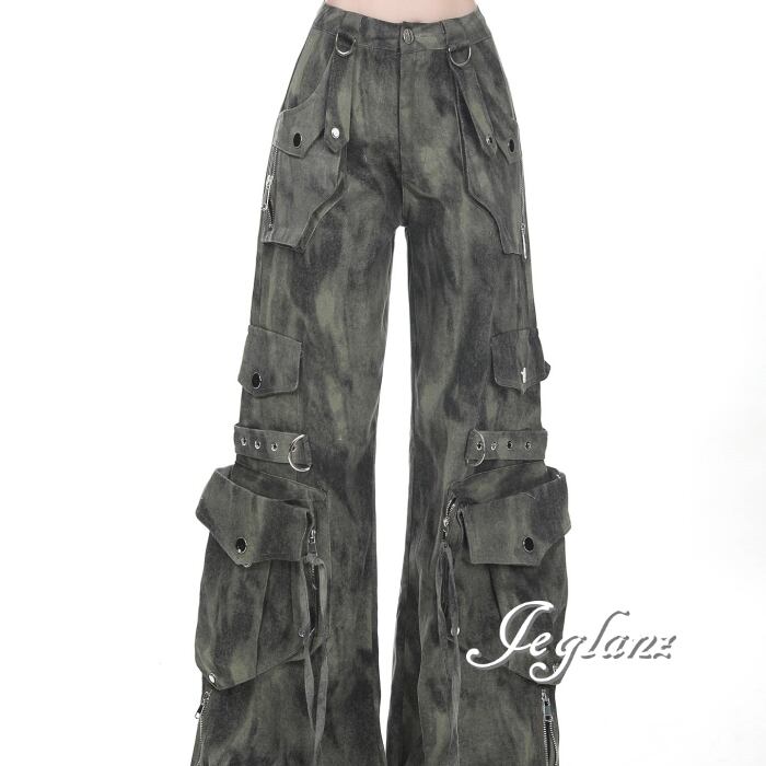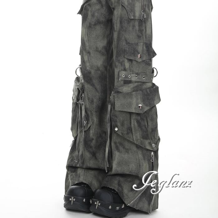 カーゴ パンツ タイダイ柄 ストリート マルチ ポケット スタッズ(MC060)