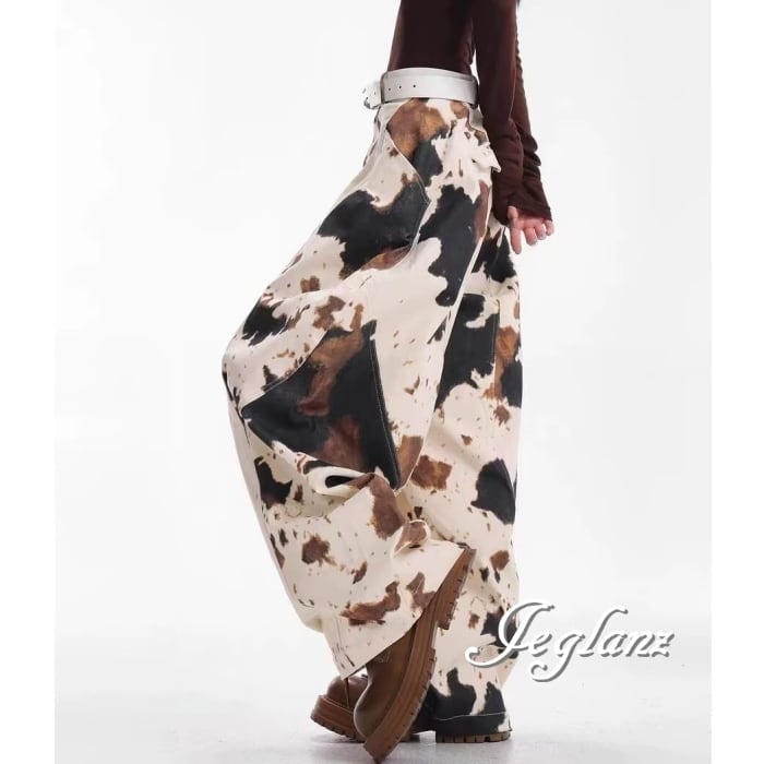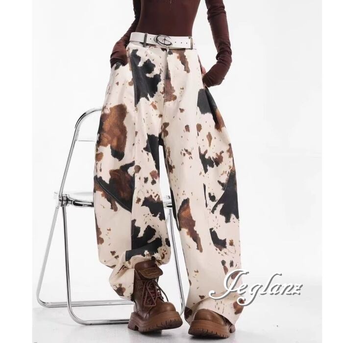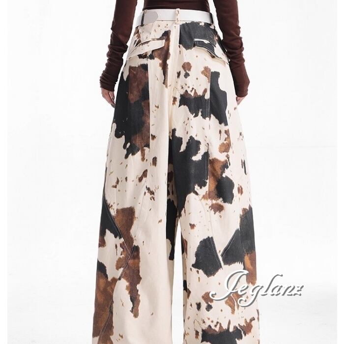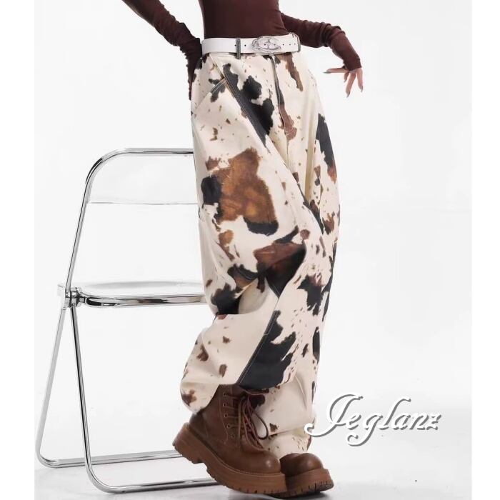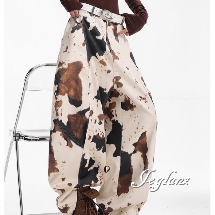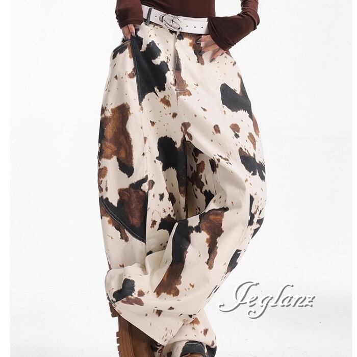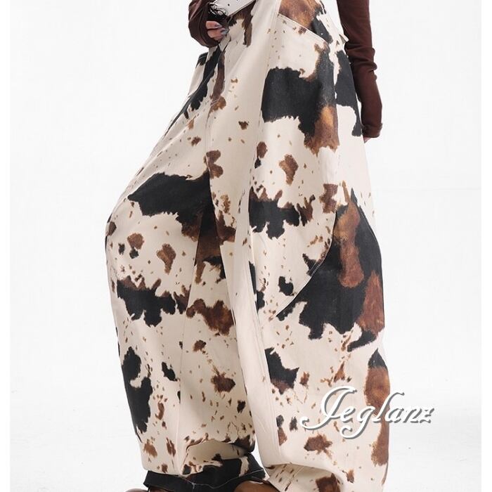 カウ デザイン パンツ ワイドレック ストリート ユニセックス(MC066)ζ